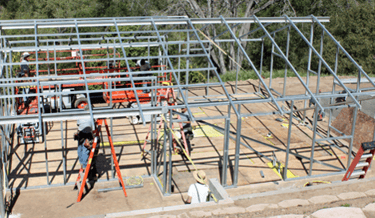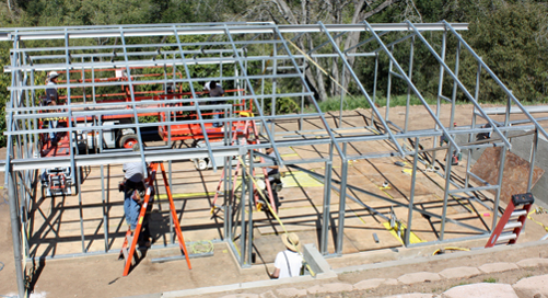 Field fabrication of metal trusses for residential use.